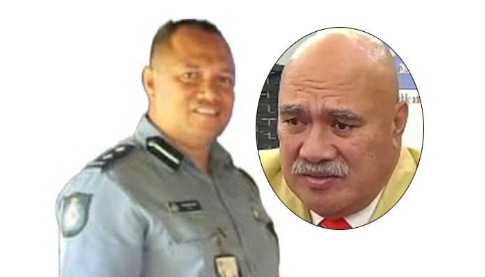 Superindentent Pelikani ‘Aho (L) with Minister of Police Piveni Piukala (inset).