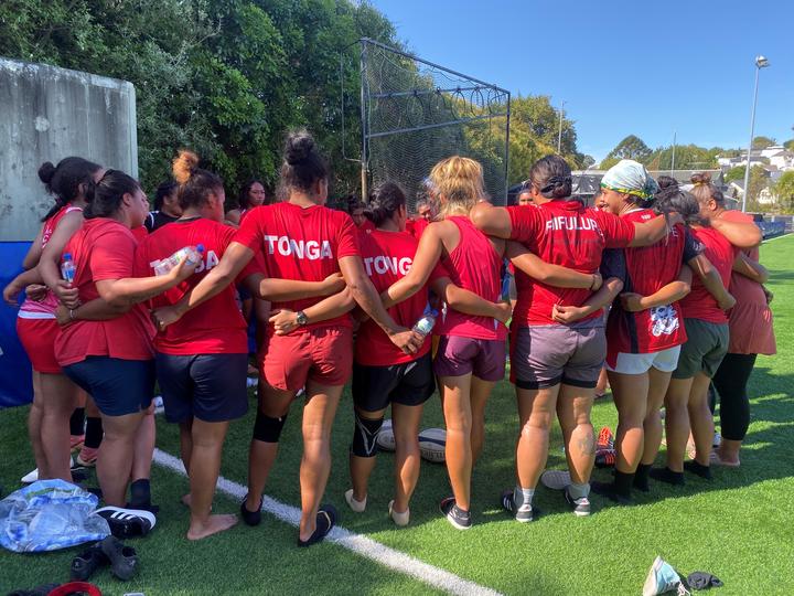 Tonga women’s XV give feedback after final Auckland training session. Photo: RNZ / Talei Anderson